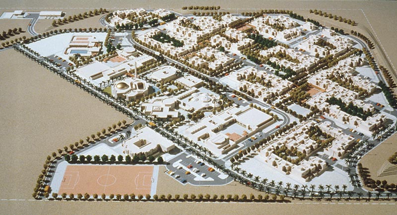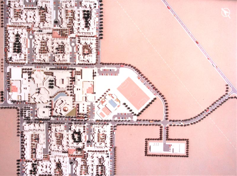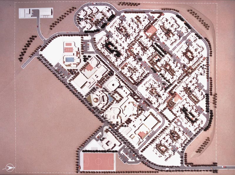 housing complex comprises, apart from the individual residences, schools,