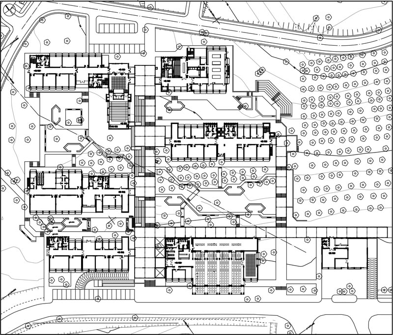 administration buildings, theater, religious building and guest facilities.